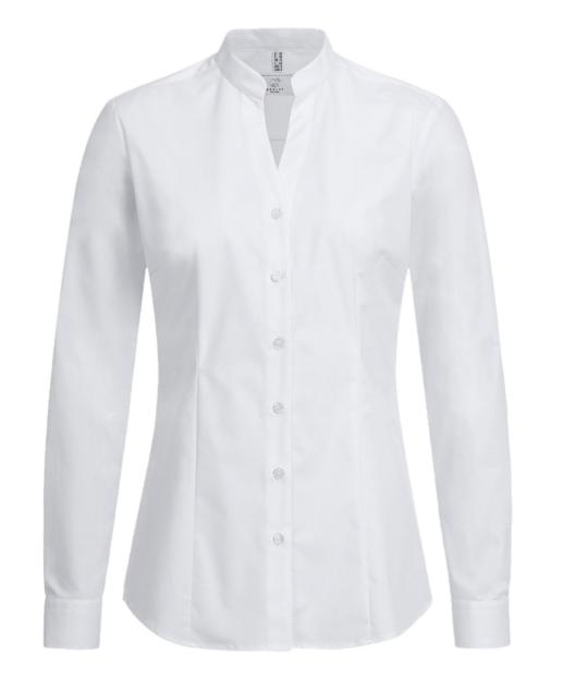 popis: 120 g/m², 57% bavlna, 40% polyester, 3% lycra, halenka v asijském stylu s krátkým nebo dlouhým rukávem, snadné ošetřování, malý stojáček, knoflíky v barvě halenky, skrytá léga (jen horní knoflík je viditelný), přední záševky pro přiléhavý střih, postranní rozparky, lehce zaoblený spodní lem