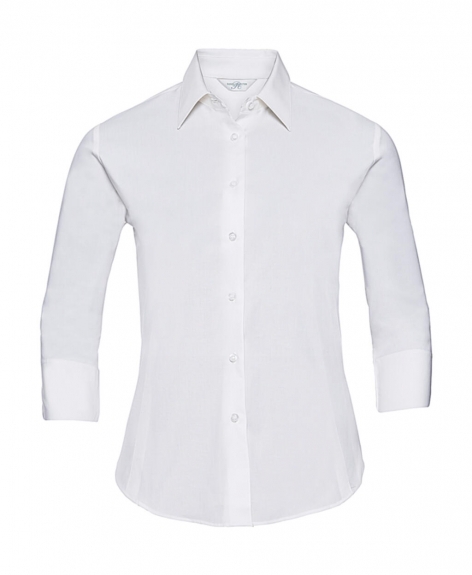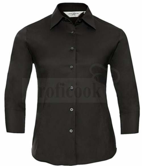 popis: Snadné ošetřování, klasický límec s knoflíkem, barevně sladěné knoflíky, 3/4 rukávy s rozparky, 2 záševky na předním a zadním dílu pro projmutý střih.