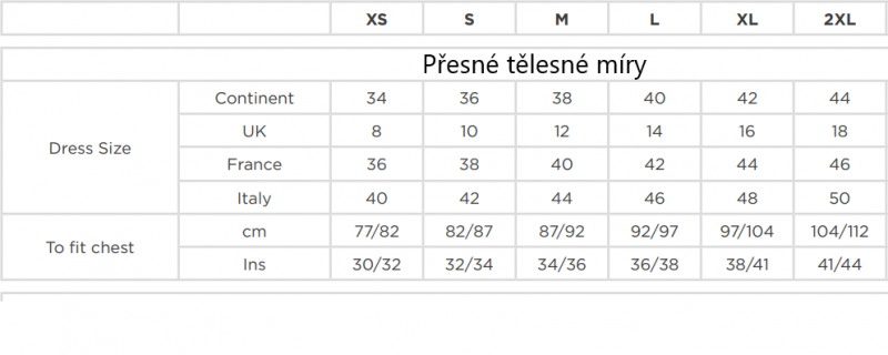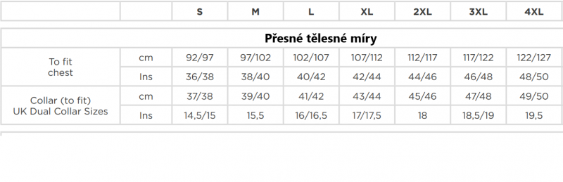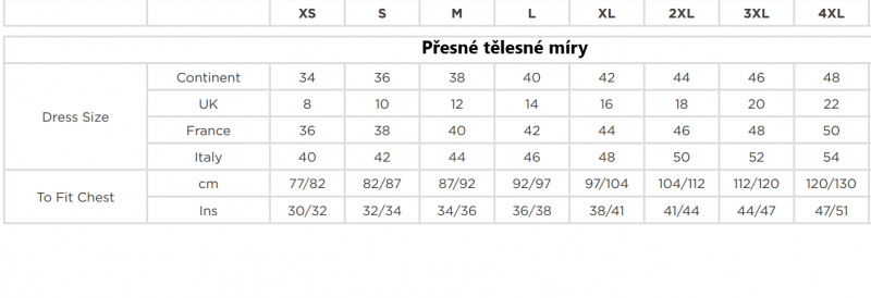 velikosti: XS - 4XL, možnost zaslání velikostní řady na vyzkoušení