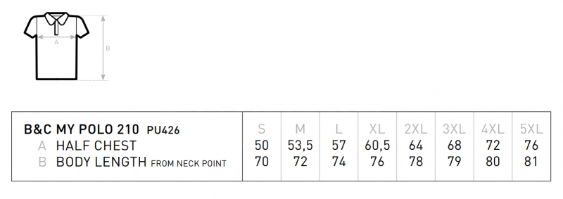 popis: 210 g/m², 98% bavlna, 2% lycra, žebrovaný límec, výstřih do V s úzkou légou s 2 barevně sladěnými knoflíky, manžety u rukávků, dvojité boční švy s rozparky